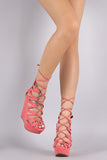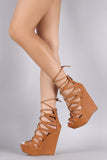This chic platform lace-up front, peep toe, and wedge heel. Finished with lightly padded insole and convenient back-zip closure.