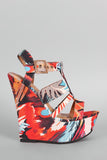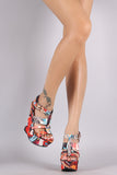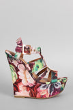 Bamboo Floral Print Strappy Platform Wedge