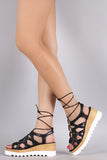 Vegan Leather Caged Lug Sole Flatform Wedge
