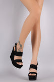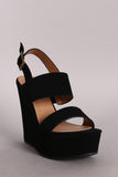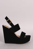 This leg-lengthening heel is on platform wedge . Open toe silhouette, featuring two bands across the vamp. Finished with an adjustable ankle strap.