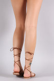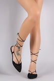 Qupid Perforated Suede Pointy Toe Lace Up Flat