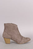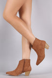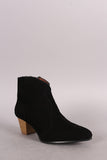Qupid Suede Pointy Toe Chunky Heeled Booties