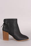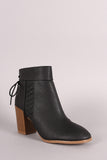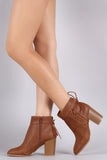 Qupid Back Lace Up Stitched Chunky Heeled Booties