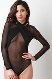 Mesh Wrapped Front Long Sleeve Bodysuit