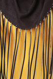 This unique scarf features vegan suede, alternating chain and suede fringe, and self-tie back.