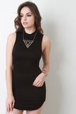 This casual mini dress features a jersey knit fabrication, mock neckline, and sleeveless construction. Finished with a curve hugging fit and rounded hemline. Accessories sold separately. Made in U.S.A. 96 % Rayon, 4% Spandex.