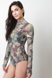 Mock Neck Printed Mesh Long Sleeves Bodysuit