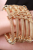 This edgy bracelet features stretchy tube chains wrapped in linked metallic rings.
