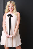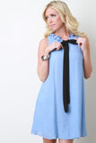 V-Neck Ribbon Tie Shift Dress
