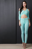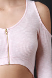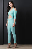 Cold Shoulder Exposed Midriff Zippered Jumpsuit