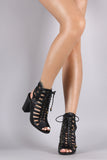 Wild Diva Lounge Caged Cutout Lace Up Booties