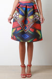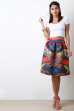Geo Print Scuba Box Pleated A-Line Skirt