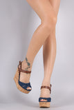 Bamboo Denim Gathered Peep Toe Cork Wedge