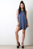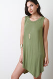 This edgy dress features a sleeveless design, rounded neckline, soft knit fabrication, made from bamboo fibers, relaxed fit, finished with an asymmetrical hemline. Accessories sold separately. Made in U.S.A. 96% Viscose from bamboo, 4% Spandex.
