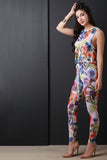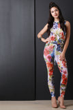 Floral Print Semi-Sheer Mesh Sleeveless Jumpsuit