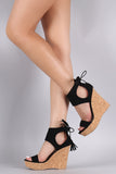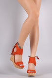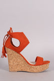 Qupid Suede Tie-Back Fish Scale Ankle Cuff Cork Platform Wedge