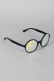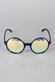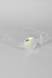 These statement glasses feature rainbow lasercut crystals round lenses, plastic framing, and single bridge.