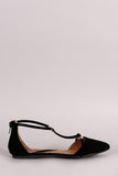 Qupid Nubuck Gold-Plated Hardware Embellished Pointy Toe Flat