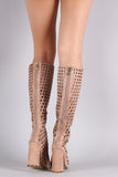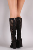 Suede Perforated Peep Toe Chunky Heeled Boots
