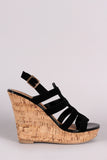 Qupid Nubuck Strappy Slingback Platform Wedge