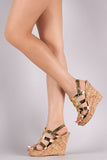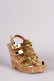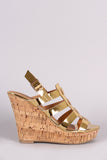 Qupid Mirror Metallic Strappy Slingback Platform Wedge