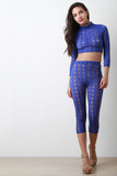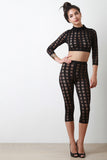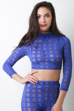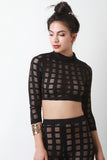 Semi-Sheer Fishnet Grid Mock Neck Crop Top