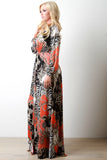 Abstract Chains and Ropes Plunging V High Slit Maxi Dress