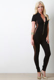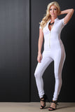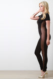 Solid Mesh Panel Zip-Up Jumpsuit