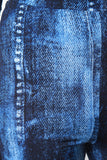 These leggings features a high waisted elasticized band, taper cut sculpture fit, and denim pattern print design. Accessories sold separately. Made in U.S.A. 96% Polyester, 4% Spandex.