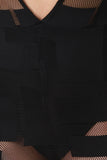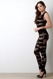Plunging V Fishnet Grid Sleeveless Jumpsuit