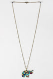This pendant necklace features a double sided elephant pendant, one side metallic gold and one side a colorful mosaic, on cable link chain, finished with a lobster claw closure.