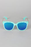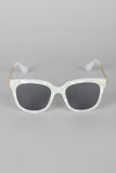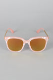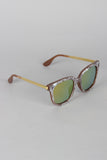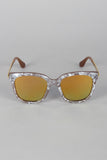 These sunglasses feature a granite finish on a wayfarer inspired plastic frames, metallic gold temple and plastic earpiece.