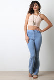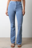 These retro jeans feature a high waist, stretch denim fabrication, vintage wash, 2 front hip pockets and 2 faux back pockets, finished with a zipper and single button closure. Accessories sold separately. 65% Cotton. 32% Polyester, 3% Spandex.
