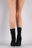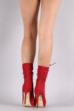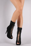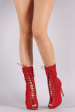 Nubuck Peep Toe Lace-Up Mid-Calf Boots