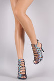 Multicolor Python Caged Peep Toe Stiletto Heel