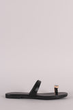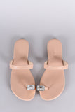 This sweet sandal features a toe ring with large gemstone embellishment, instep strap, lightly padded insole, and easy slip on style.