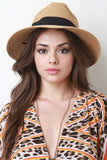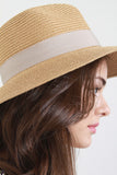 This hat is panama hat silhouette with a woven straw design. Features a decor ribbon. Finished with an interior ribbon lining.