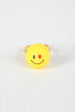 This cutesy ring features a yellow sphere with the heart-eye emoji on it, finished with a high-polished metal frame.