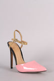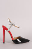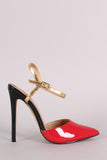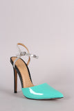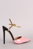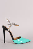 Patent Colorblock Pointy Toe Ankle Strap Pump