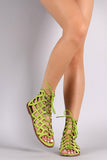 Vegan Suede Lace-Up Cutout Gladiator Flat Sandal