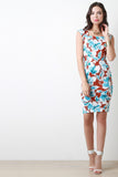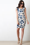 This retro inspired mini dress features a square neckline, princess seams, knit fabrication, cap sleeves, curve hugging bodycon fit, and an invisible zipper back closure with a back vent. Accessories sold separately. Made in U.S.A. 95% Polyester, 5% Spandex.