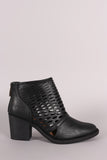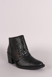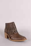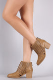 Qupid Perforated Cowgirl Chunky Heeled Booties